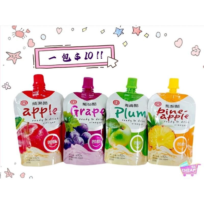 《特價》十全 果醋飲 即飲包100ml(蘋果/葡萄/青梅/鳳梨)四種水果口味 ☆一包$10!!😍 十全果醋飲 即飲隨手包100m 蘋果醋/葡萄醋/青梅醋/鳳梨醋 🎉季節限定款🎉 👉草莓/荔枝/水蜜桃 健康優惠價: 一包10元!! 一包10元!! 一包10元!! 本賣場有4種水果口味喔!! 蘋果 葡萄 青梅 鳳梨 精純糯米浸製醇釀, 融入不同風味的水果, 提釀出酸甜好滋味的果醋 水果芬香,酸甜解渴, 輕鬆即飲順口 隨手包100ml方便攜帶, 健康清涼醋飲最佳選擇, 為您的健康加分, 冰涼後更好喝喔!! 飲用方法:開封後可直接飲用,冰涼更好喝 ❌OK蝦皮店到店:一單最多40包❌ ‼️全家7-11萊爾富:一單最多45包‼️ ❌OK蝦皮店到店:一單最多40包❌ ‼️全家7-11萊爾富:一單最多45包‼️ ~~~~~~~~~~~~~~~~~~~~~~~~~~~~~~~~~~~~~~~~~~~~~~~~~~~~~~~~~~~~~~~~~~~~~~~~~~~~~~~~~~~~~~~~~ {下單前請先注意的事項} ✳️因氣候溫度變高時,巧克力,糖果類商品容易受到高溫影響,會融化屬於自然現象,建議您收到商品時,先放冰箱一段時間 後,再享用,會變的更可口哦!(如介意者,請勿下單) ✳️此餅乾為易碎品,運送過程中難免碰撞易碎,若介意者請勿下單!! ✳️超商取貨限制:商品重量不可超過5公斤,商品包裹長,寬,高總和不可超過105公分,如遇商品體積過大無法超取,需請買家 配合更改寄送方式,如有不了解,可先私訊聊聊後再下單哦! ✳️因人力包材成本考量,本賣場全館需滿$200元上才可安排出貨(但若因重量之關係,而不滿200元,我們還是會安排出 貨 的) ✳️為了確保雙方權益,領取包裏打箱時,請錄影謝謝! ✳️發票如需開立統編者,請於結帳前,在備註欄位中填寫完整 ✳️如要取消訂單,或更改訂單內容,請於賣家申請單號前自行取消或更改 ✳️請勿在聊聊裡備註商品口味,下單前請確認商品口味,並正確下單