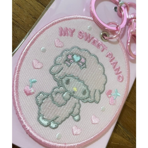 奶油點心兔~2025年角色大賞系列:美樂蒂家族,彼安諾小羊刺繡圖案 橢圓形粉紫色扣環鑰匙圈