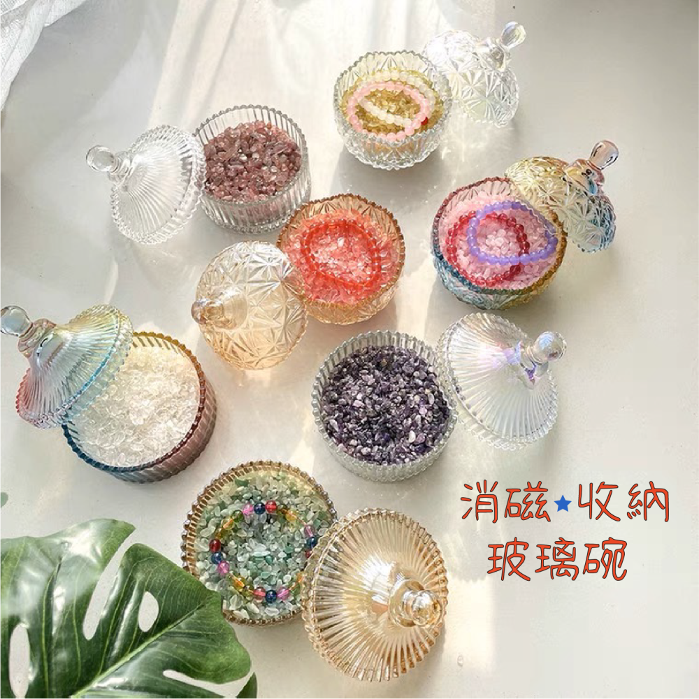 💎靈氣滿滿的玻璃消磁碗搭配滿滿的消磁石 再放置「水晶發電機」---水晶柱