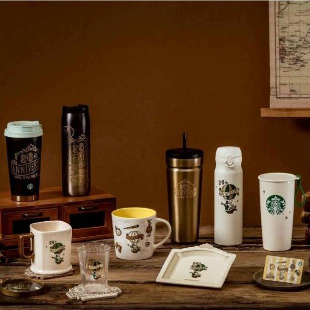 星巴克 熱氣球探險玻璃杯 207ml / 熱氣球探險造型盤 / 26週年紀念玻璃杯207ml