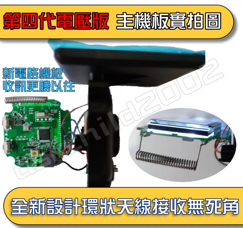 第四代全新帶電壓檢測版本採用全新設計機板,電晶體更多穩定性更高支援傳感器電壓檢測功能,機板配置的不鏽鋼環狀天線讓接收更無死角