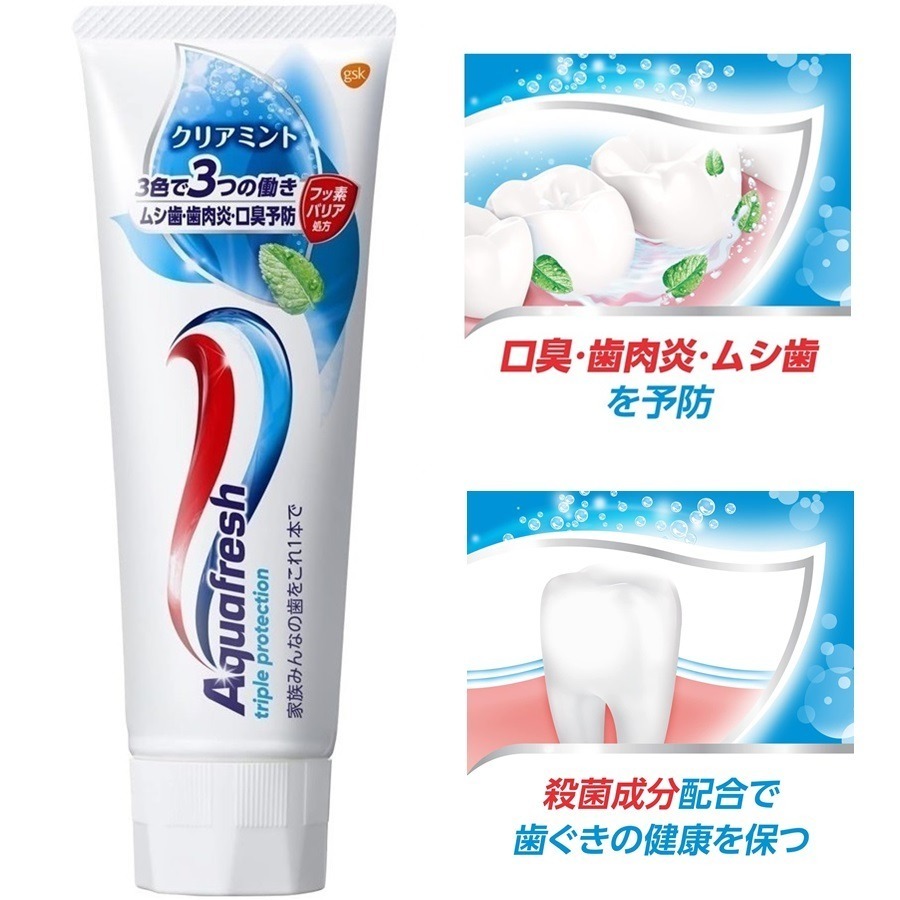 日本製 Aquafresh三重防護牙膏 紅白藍三色牙膏 預防蛀牙 牙齦炎 口臭140g