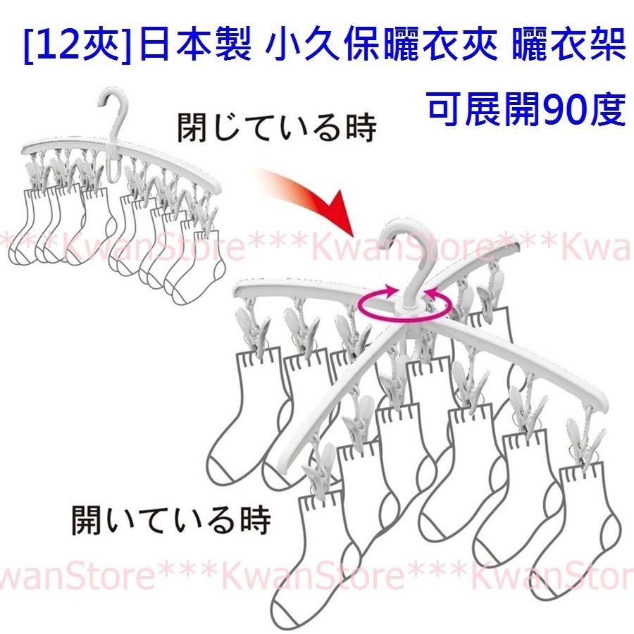 [12夾]日本製 小久保曬衣夾 晾衣夾 曬衣架 可展開90度 KOKUBO