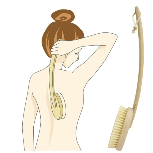 日本製 天然毛洗澡刷 人體工學把柄曲線設計 天然木把手 天然動物毛 洗背刷子