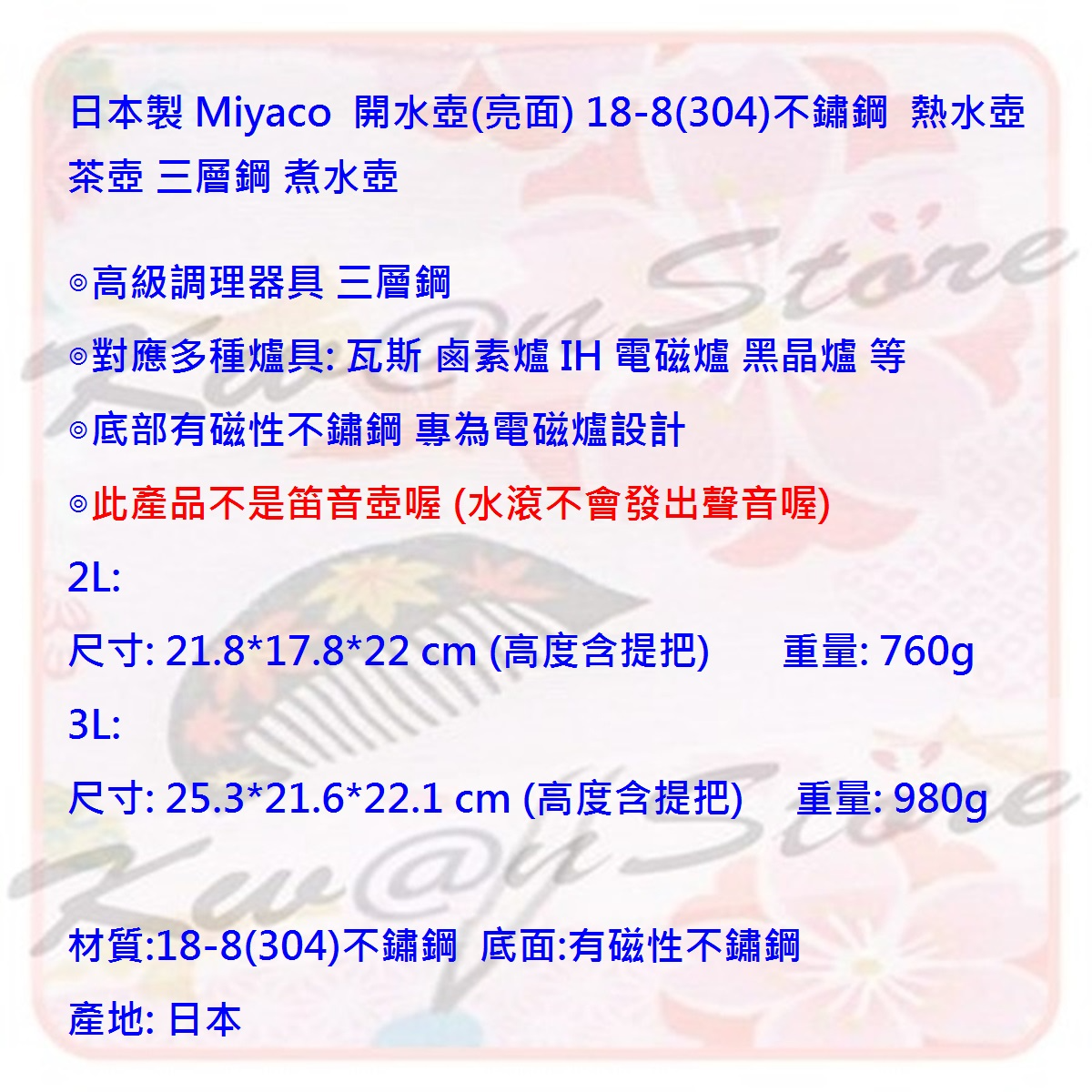 [特價促銷]日本製 Miyaco宮崎 開水壺(亮面) 18-8(304)不鏽鋼 熱水壺 茶壺 高級調理器具三層鋼 煮水壺