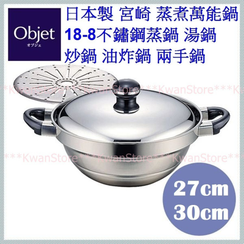 [27/30cm]日本製 宮崎 蒸煮萬能鍋 304不鏽鋼段付鍋 蒸鍋 湯鍋 炒鍋 油炸鍋 兩手鍋