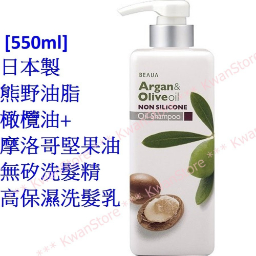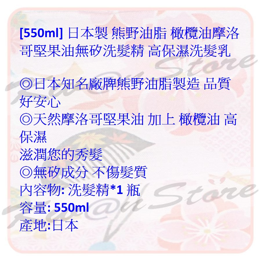 [550ml] 日本製 熊野油脂 橄欖油摩洛哥堅果油無矽洗髮精 高保濕洗髮乳