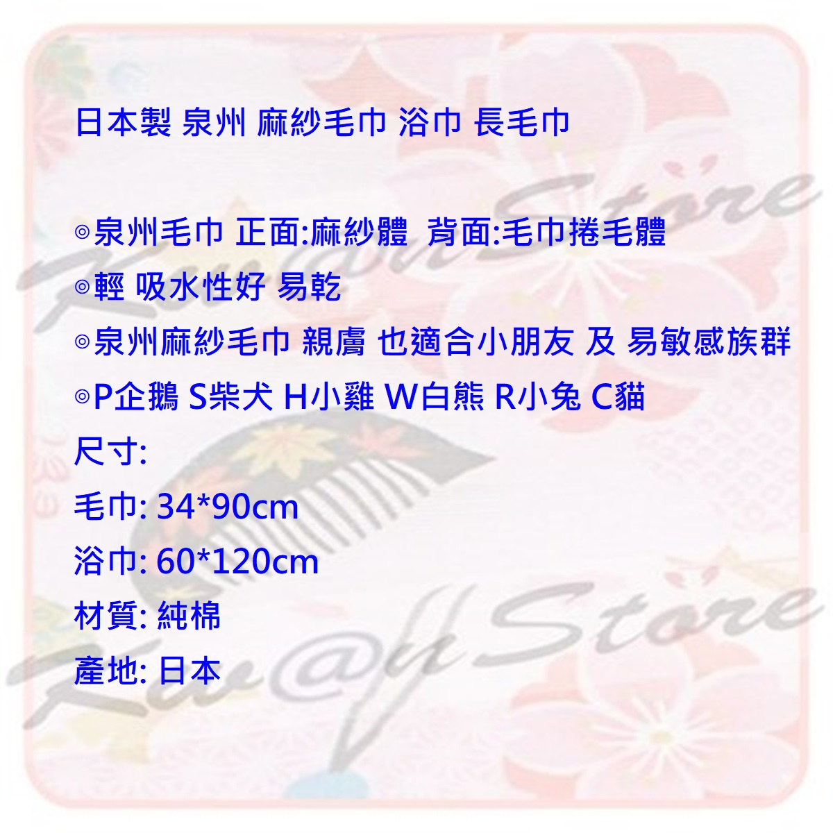 [60*120cm]日本製 浴巾 泉州 麻紗毛巾 浴巾