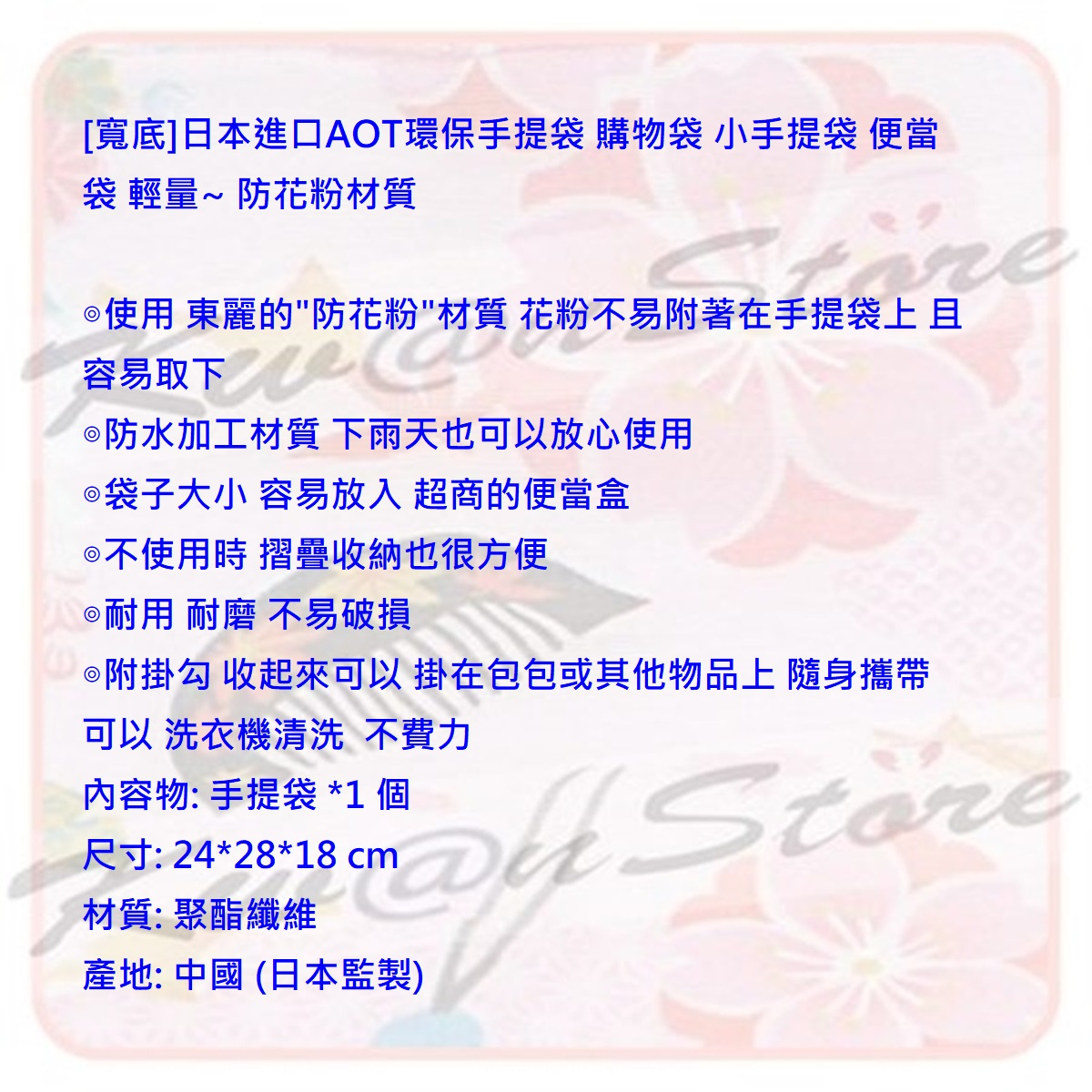 [寬底]日本進口 AOT環保手提袋 購物袋 小手提袋 便當袋 輕量 可摺疊收納手提袋~ 防花粉材質