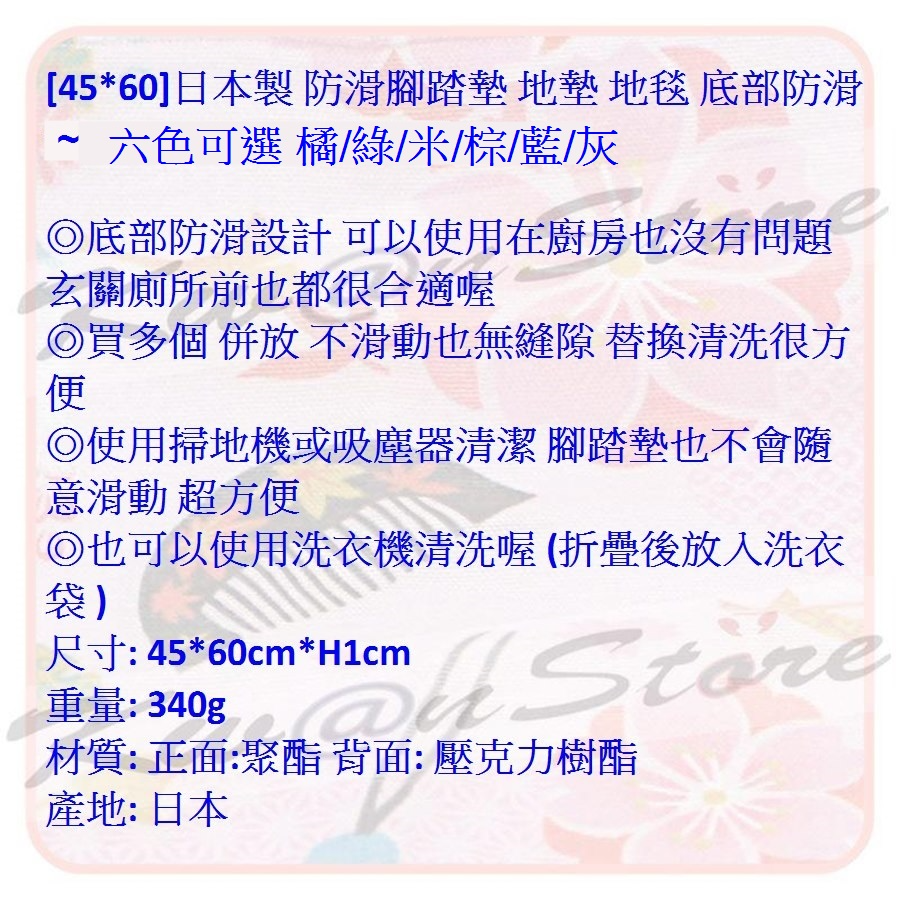 [45*60]日本製 防滑腳踏墊 地墊 地毯 底部防滑~六色可選~橘/綠/米/棕/藍/灰