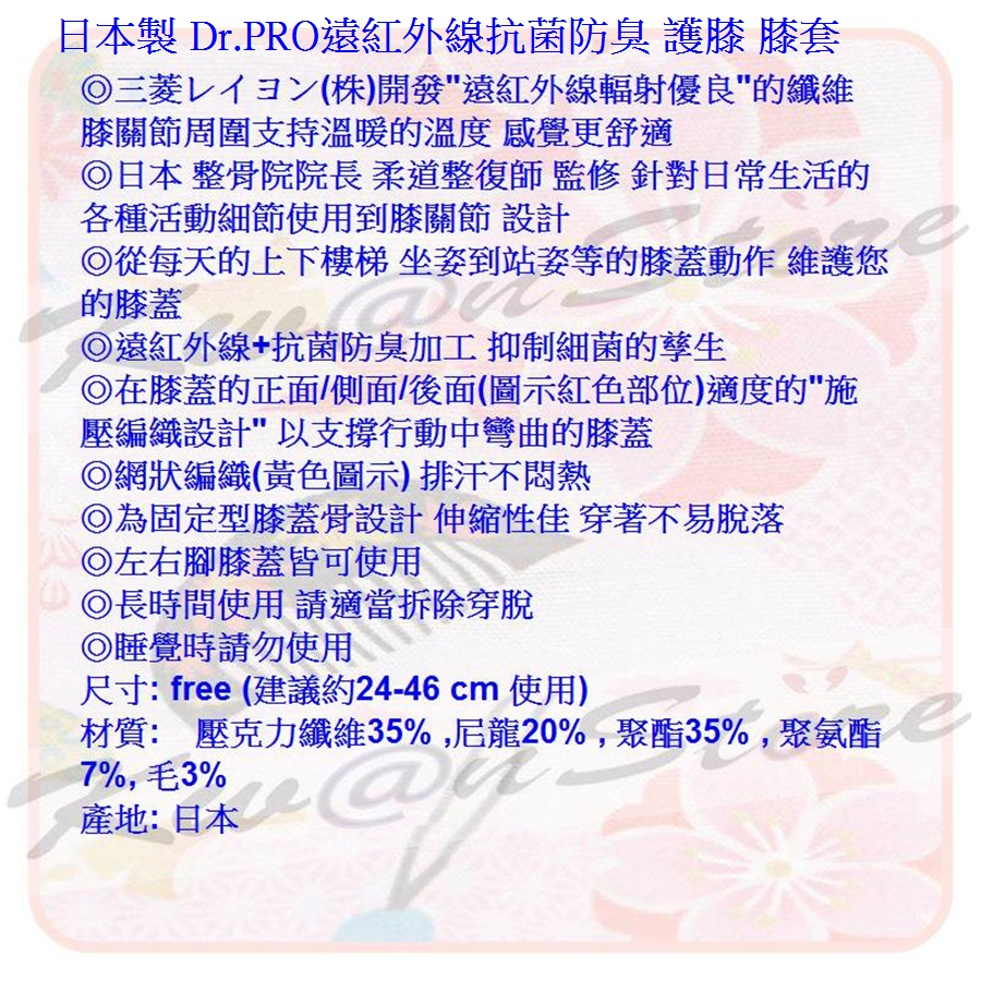 [促銷][一入膚色]日本製 Dr.PRO遠紅外線抗菌防臭 護膝 膝套 日本整骨院長監制 加壓伸縮護膝男女兼用 日本護膝