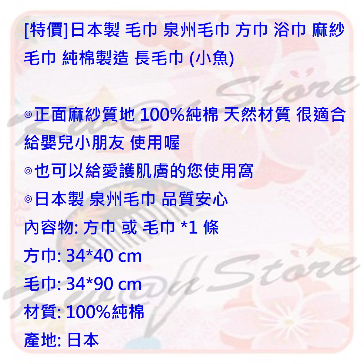 [特價]日本製 毛巾 泉州毛巾 方巾 麻紗毛巾 純棉製造 長毛巾 (小魚)
