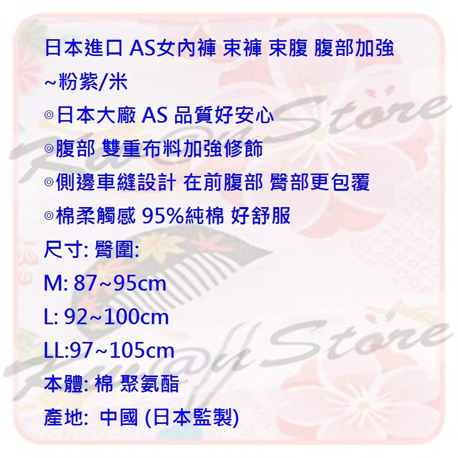 日本進口 AS女內褲 束褲 束腹 腹部加強 中腰~粉紫/米
