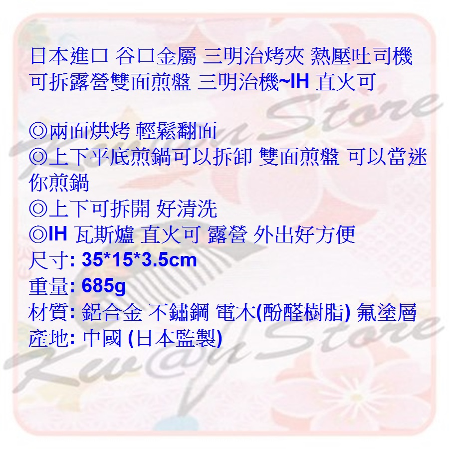 日本進口 谷口金屬 三明治烤夾 熱壓吐司機 可拆露營雙面煎盤 三明治機~IH 直火可