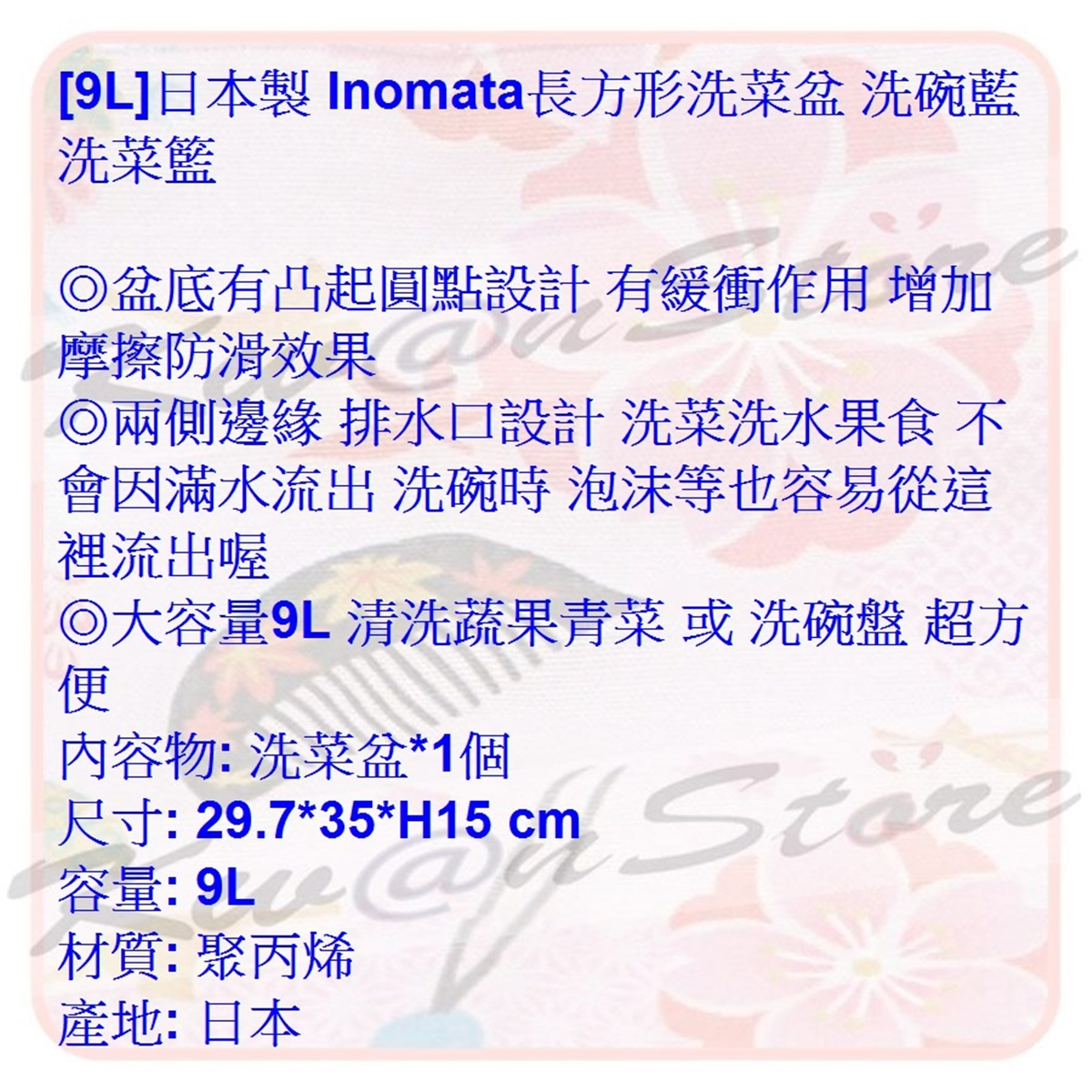 [9L]日本製 Inomata 長方形洗菜盆 洗碗藍 洗菜籃 洗碗盆 洗水果洗菜~白