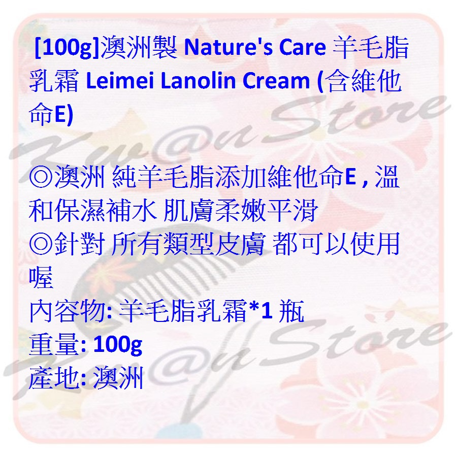 [100g]澳洲製 Nature Care 羊毛脂乳霜 Leimei Lanolin Cream (含維他命E)