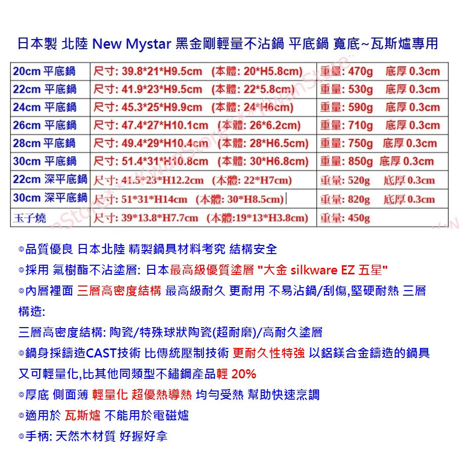日本製 北陸 New MyStar黑金剛輕量不沾鍋 不沾平底鍋 寬底~瓦斯爐專用