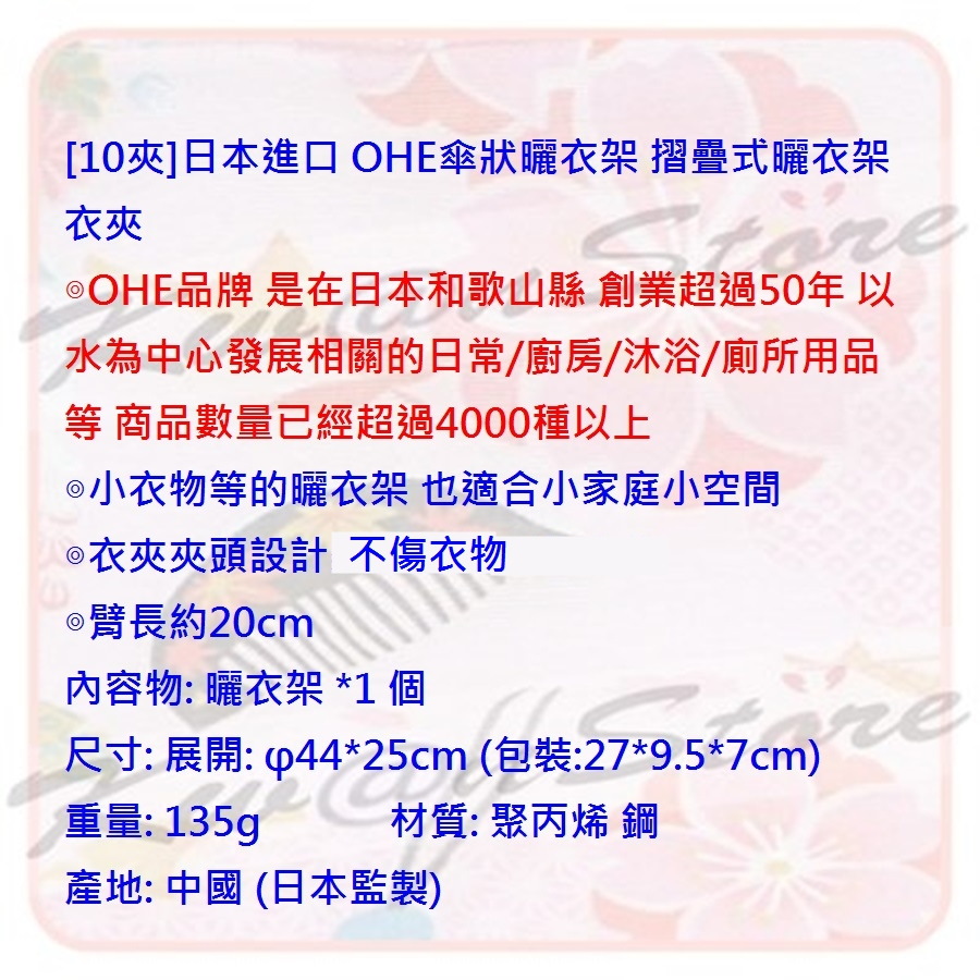 [10夾]日本進口 OHE 傘狀曬衣架 摺疊式曬衣架 日本衣架 衣夾