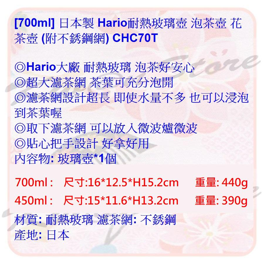 [450/700ml] 日本製 Hario耐熱玻璃壺 泡茶壺 花茶壺 (附不銹鋼網)
