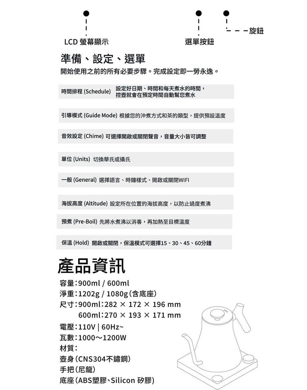 - 保存方式:壺身及底座請保持乾燥,潮濕時請勿通電
