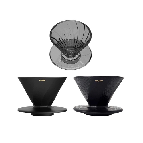 ● 經典60度濾杯,陶瓷黑曜釉材質,與V60相同的濾杯孔洞設計及24條長短凹肋肋線