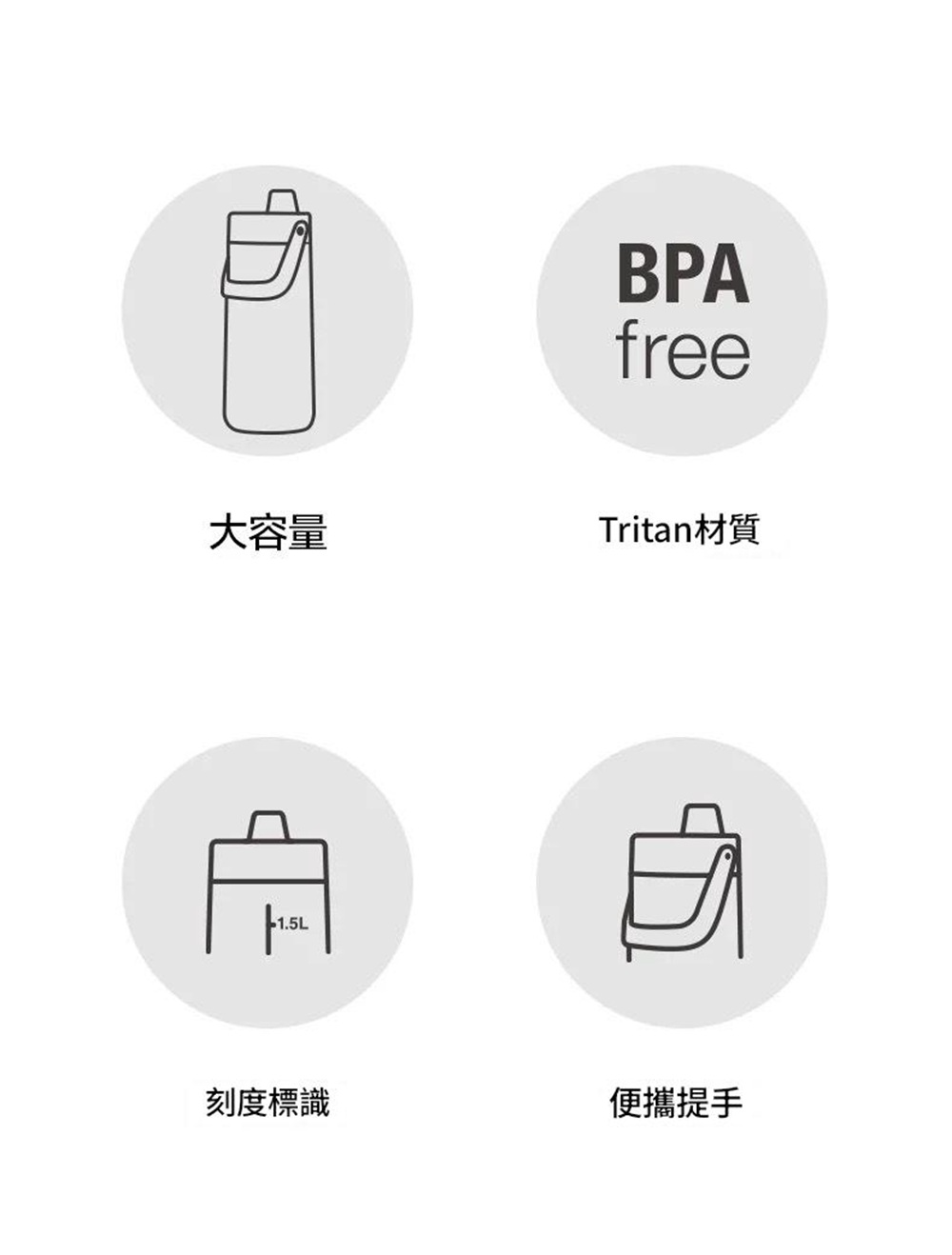 材質:本體-TRITAN共聚酯(改質PCT);上蓋/濾網/吸嘴 -PP聚丙烯;密封條-矽膠 ; 吸管-(上) PP聚丙烯,(下) 矽膠