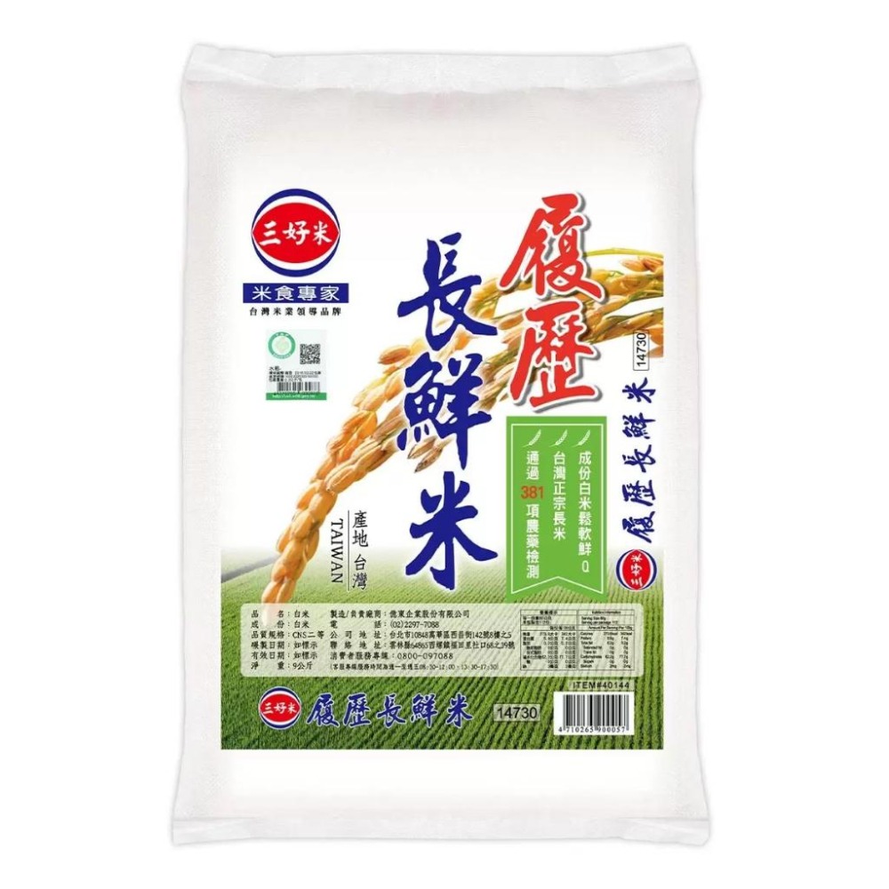 宅配免運 好市多官網代購 三好米 長鮮米 9公斤