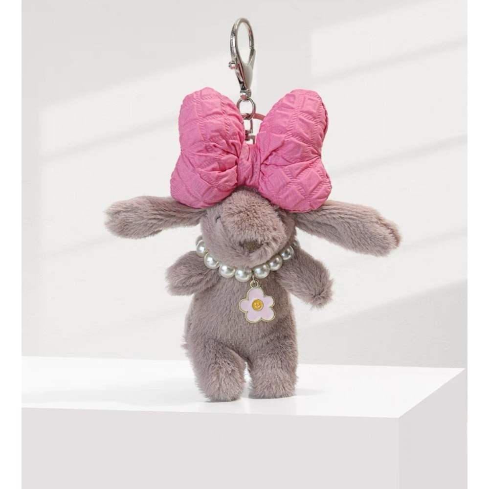 可愛蝴蝶結珍珠兔包包配件吊飾