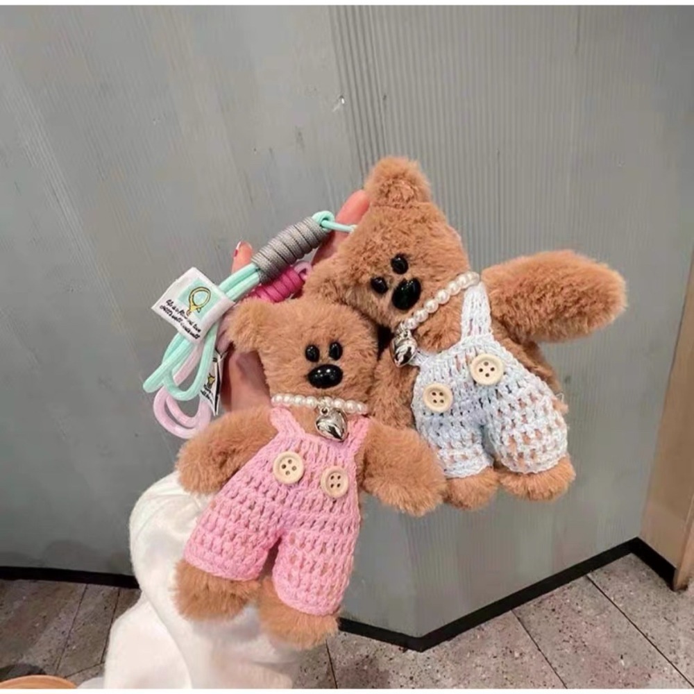 吊帶褲憨豆熊掛吊飾 珍珠愛心項鍊包包掛飾可愛鑰匙扣情侶款 豆豆先生的泰迪熊