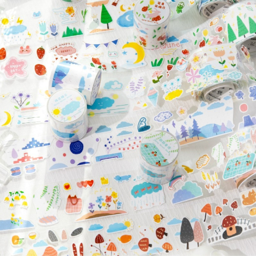 BONBONBONNIE🐰暮光 春日萌芽系列 可愛簡約童趣插圖閃砂膠帶
