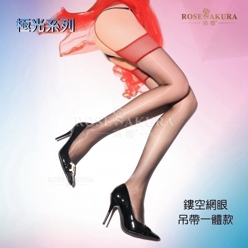 珞櫻極光系列 鏤空網眼吊帶一體襪