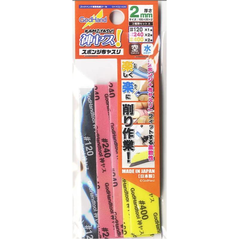 ⭕️購買商品不滿199元不出貨 不含運費,謝謝. ⭕️購買商品不滿199元不出貨 不含運費,謝謝. ⭕️購買商品不滿199元不出貨 不含運費,謝謝. (大鳥叔叔模型) GodHand 神之手 KS2-A3A 海綿砂紙 低番數 2mm 內容物:#120 1枚 #240 #400 各2枚 010
