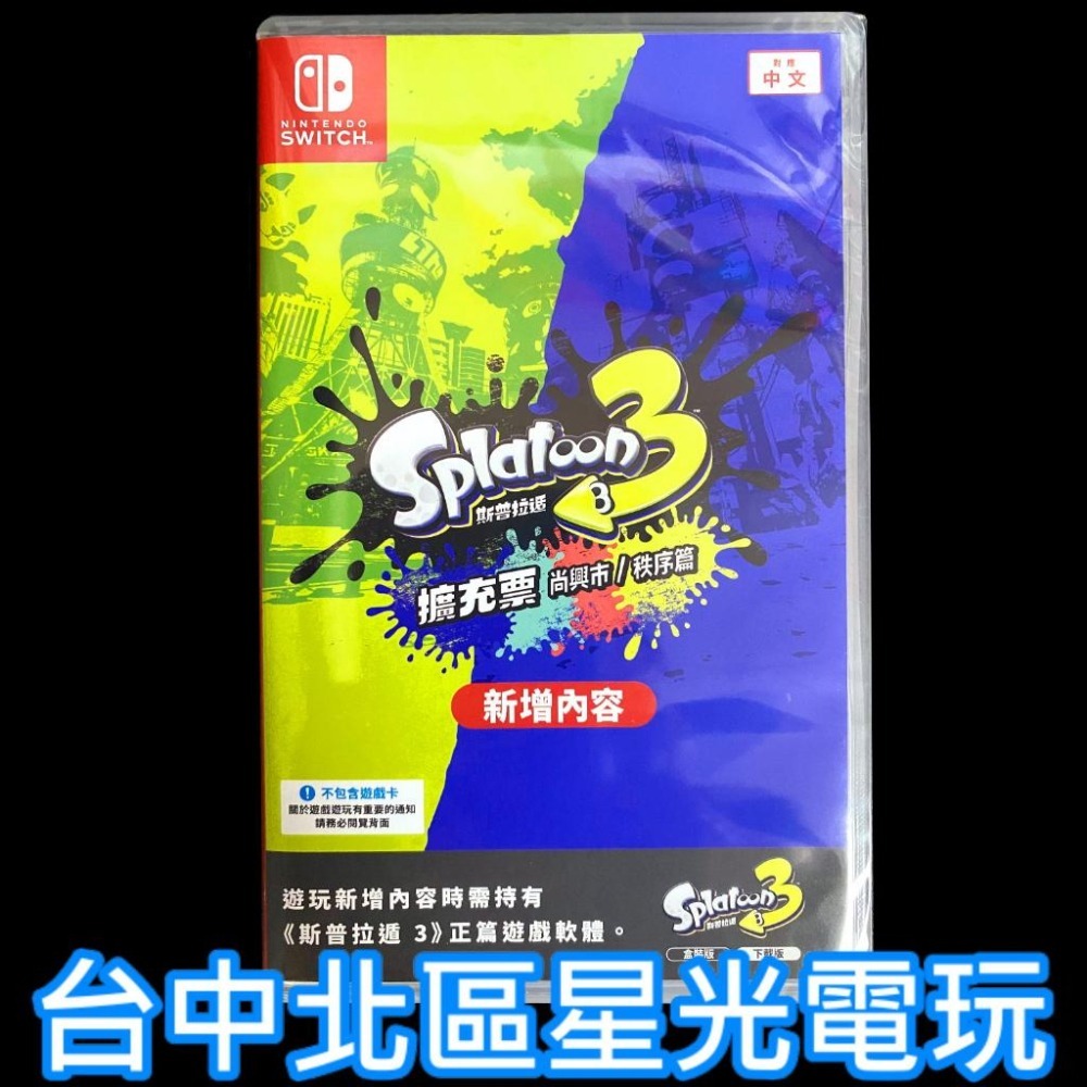 第 1 彈擴充內容是「尚興市」。可以將以 WiiU 遊戲軟體《Splatoon》為舞台的「尚興市」設定為城鎮。除了當時的陣容,還會有新店員登場。此外,鮭魚跑、占地鬥士、魷 地和 amiibo 等,可享受跟蠻頹鎮一樣的樂趣。舉辦祭典時,麻辣魷物的 2 人會前來助威。請好好體驗這個懷念與新鮮感並存的嶄新尚興市! 第 2 彈擴充內容是「秩序篇」。映照著的似乎是《Splatoon 2》的舞台「尚興廣場」,四周都變成一片雪白。到底發生了什麼事呢……? ※請注意:需持有《斯普拉遁 3》正篇遊戲軟體,方可使用擴充票內容!