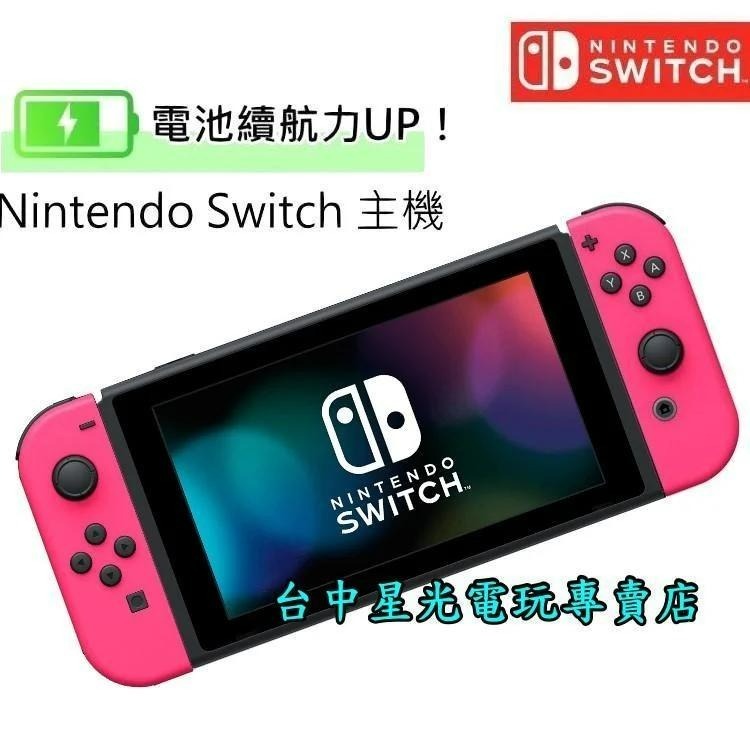 1. Nintendo Switch主機 新型號 Nintendo Switch 主機的尺寸、重量與功能與舊型 Nintendo Switch 相同,唯一不同的是續航力大幅增加,由約 2.5~6.5 小時增加至約 4.5~9.0 小時,增幅從 38% 到 80% 不等。