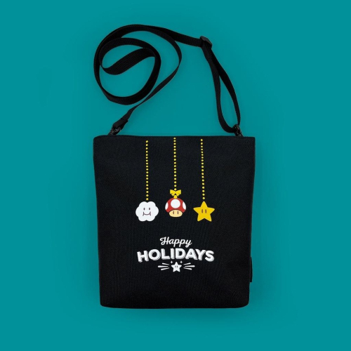 ※本商店商品消費者享有商品到貨十五天猶豫期之權益[猶豫期非使用期],但退回商品必須是全新狀態且包裝完整。 任天堂 2022年冬季特典 Happy Holidays限定隨身包 以黑色為底點綴超級瑪利歐遊戲中的可愛道具們,低調又充滿亮點! 商品尺寸:21 x 20 x 5cm
