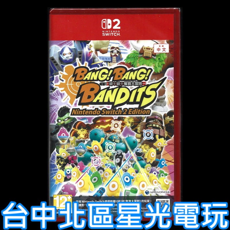 遊戲內容簡介 《砰!砰!奪寶大冒險》為一款派對射擊遊戲新作。玩家可以輕鬆得以 Joy-Con 2 控制器當作槍械、直覺性的指向目標進行射擊,並且收錄包括叢林、遺跡......等 12 個各具特色的舞台。