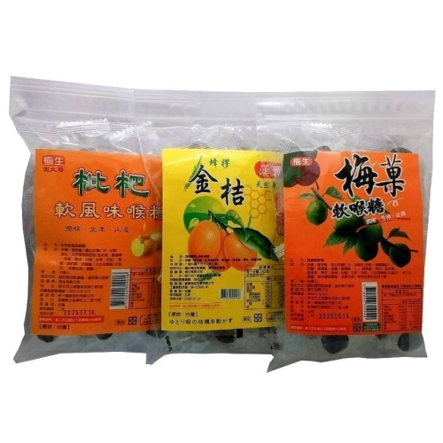 1. 品名:榆生澎大海 枇杷軟風味喉糖/梅菓軟喉糖/清潤喉糖-金桔蜂膠