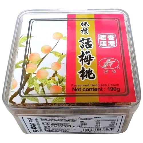1. 品名:香港 啟發 化核話梅桃 190g/盒