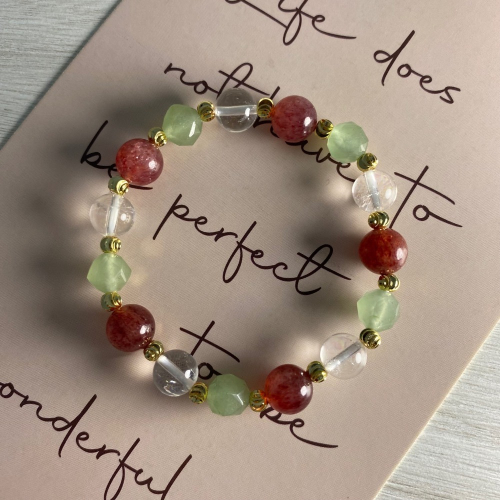 潤衡 衡石 | 櫻桃草莓晶 × 綠東陵 × 白阿賽 水晶手串 手鍊