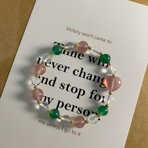 粉草莓晶 × 綠草莓晶 × 白水晶|愛與療癒能量水晶手串