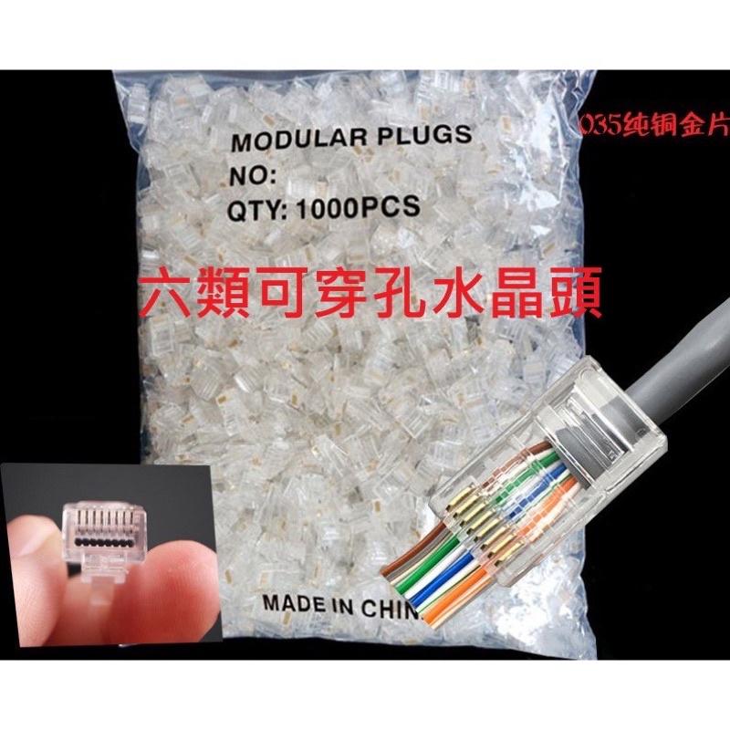 品名:通孔式六類水晶頭 穿孔型六類水晶頭 材質:PC料+三叉0.35純銅片 純銅加厚金片,抗氧化能力首屈一指 1個3元,500個以上每個2元
