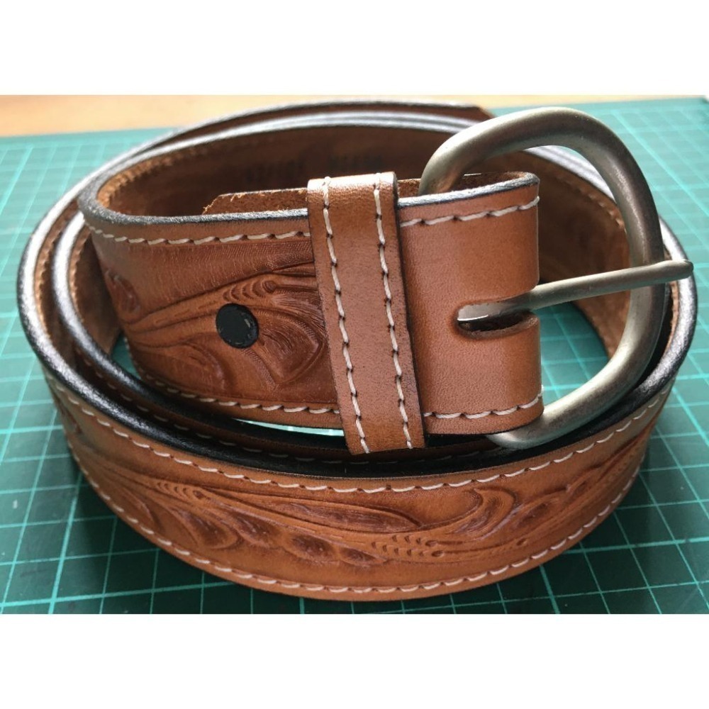 手工皮雕皮帶 美國製 Made in USA