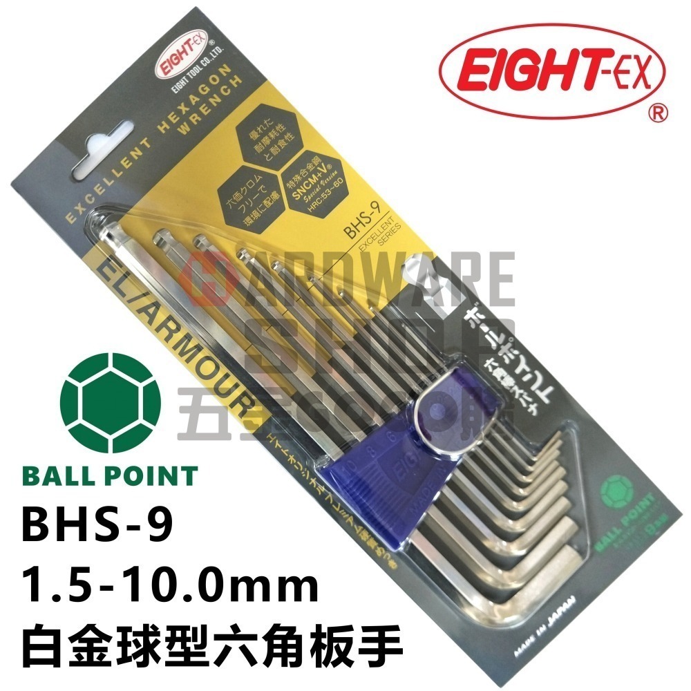 🇯🇵 日本 EIGHT 公制 BHS-9 9支組 白金球頭六角扳手 1.5~10.0mm