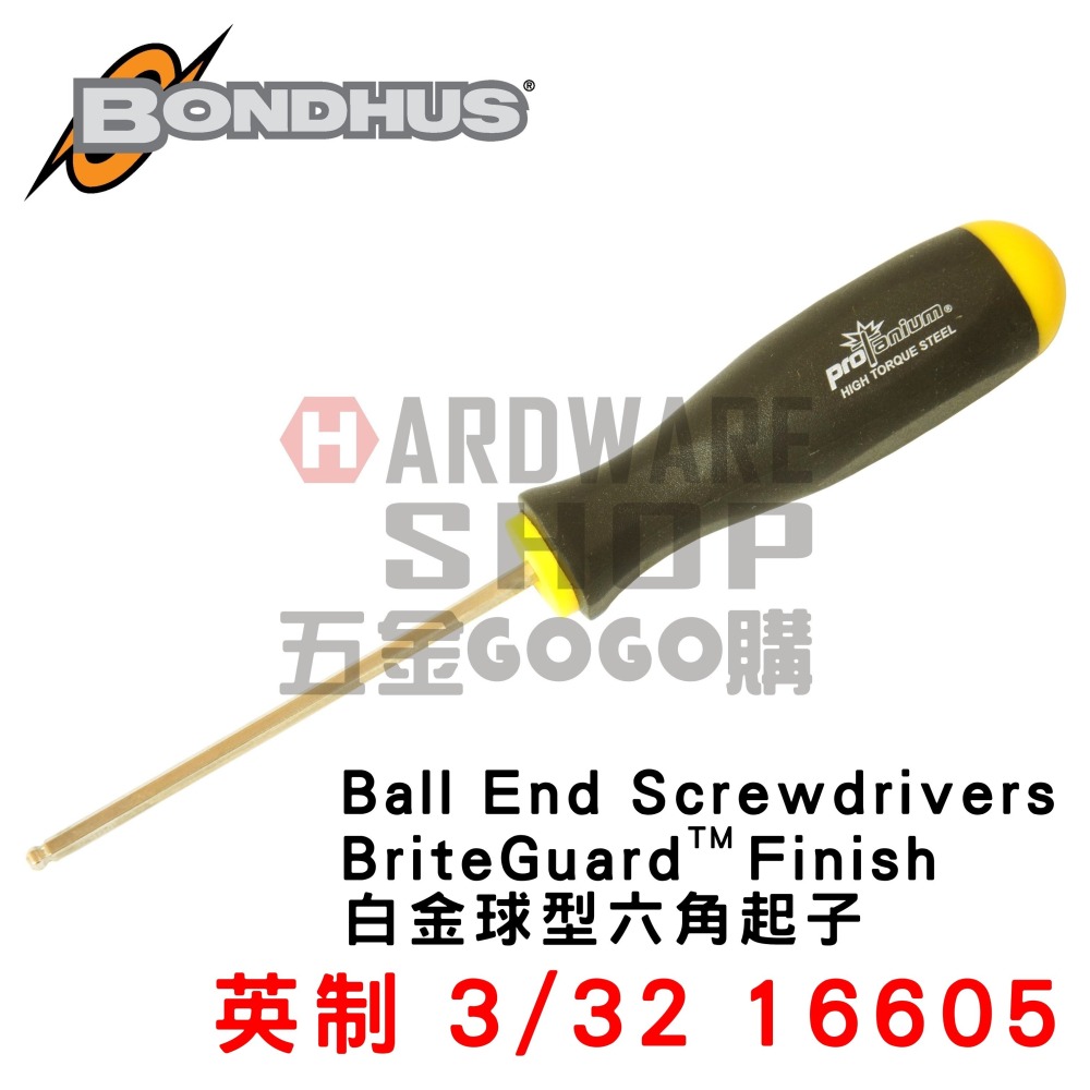 美國 BONDHUS 英制 16605 3/32 白金 六角起子 球型 六角板手 球頭 六角扳手