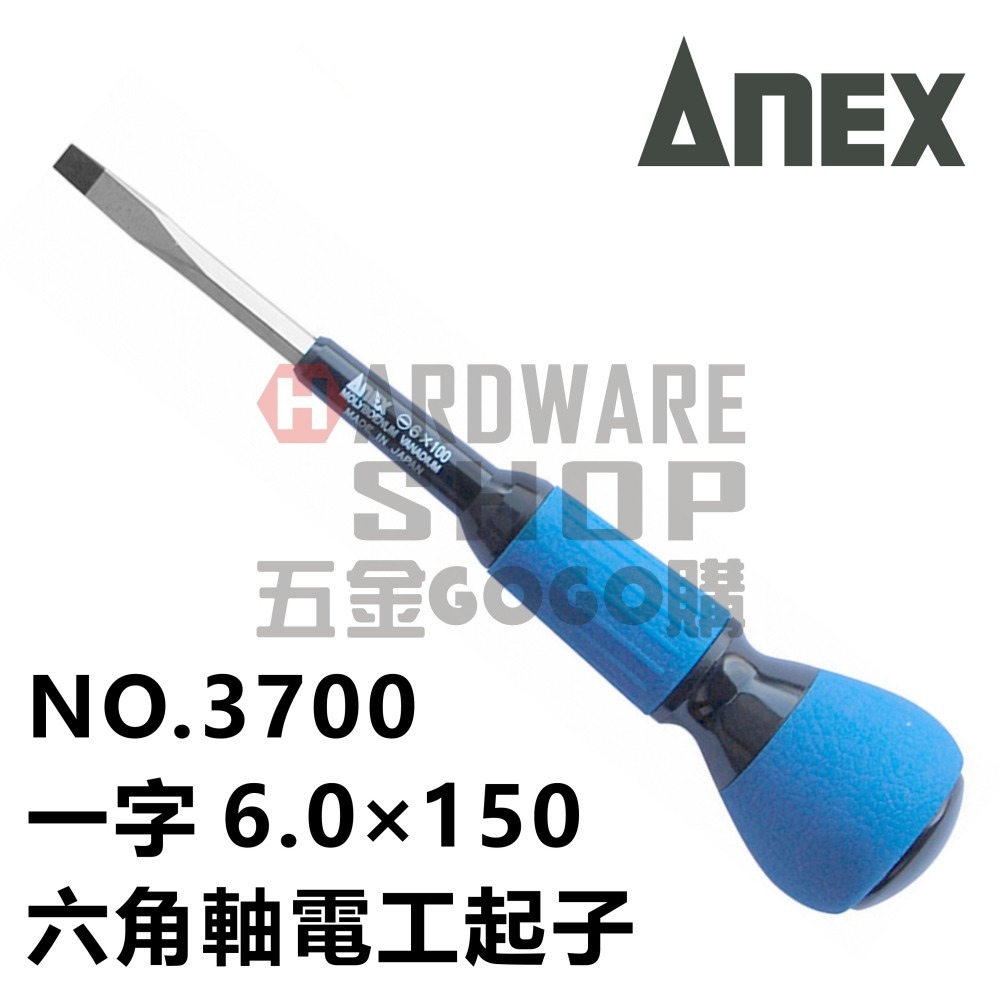 日本 ANEX 兼古製作所 No.3700 電工 一字 起子 6.0 × 150 一字電工螺絲起子 6*150