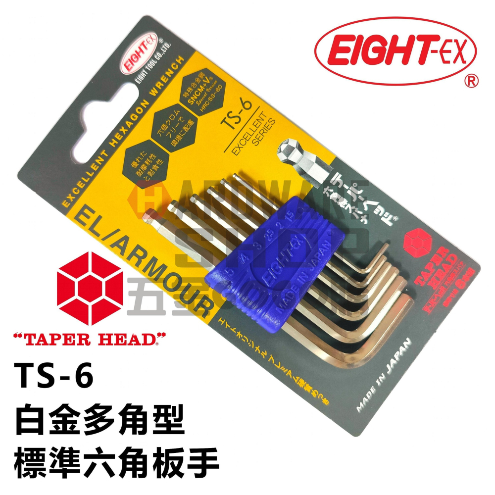日本 EIGHT 公制 TS-6 6支組 1.5~5.0mm 白金 多角 球型 標準 六角板手 球頭 六角扳手 TS6