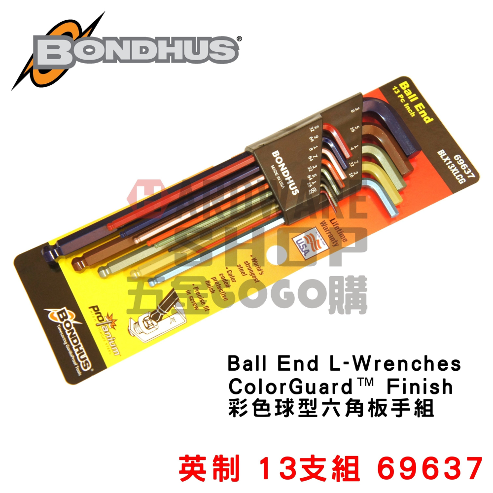 美國 BONDHUS 英制 69637 13支組 彩色 球型 六角板手 球頭 六角扳手