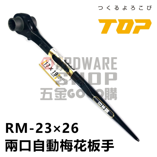 日本 TOP 兩口 自動 梅花板手 RM 23×26 建築用 尖尾 棘輪 梅花扳手 両口ラチェットレンチ RM-2326