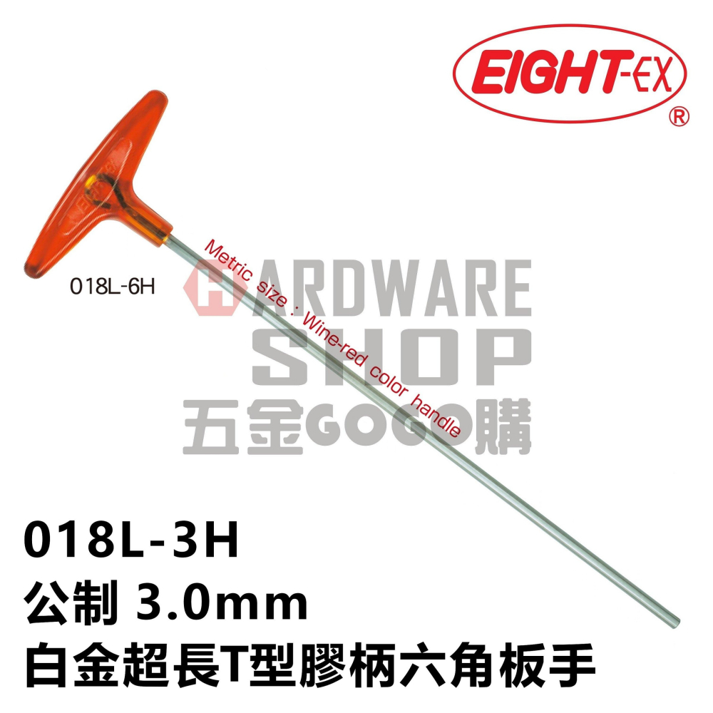 日本 EIGHT 公制 018L-3H 白金 T型 超長 膠柄 六角板手 018 L 3.0 mm 六角扳手