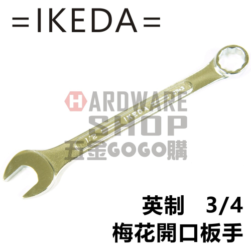 🔧 日本 IKEDA 池田 日式 梅開板手 英制 3/4"